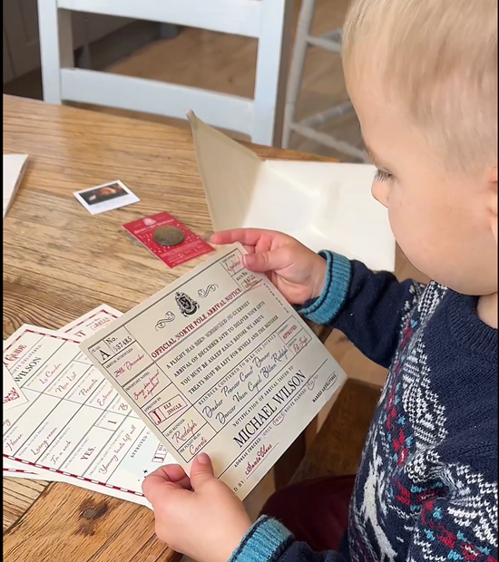 12 personalisation points including, name, age, achievements so that your child receives a truly magical personalised letter from Santa. Beautifully designed with authentic details such as Santa Claus’s official emblem, Santa and Elves signatures, stamps and other magical touches to make it look like it was really sent from the North Pole.
